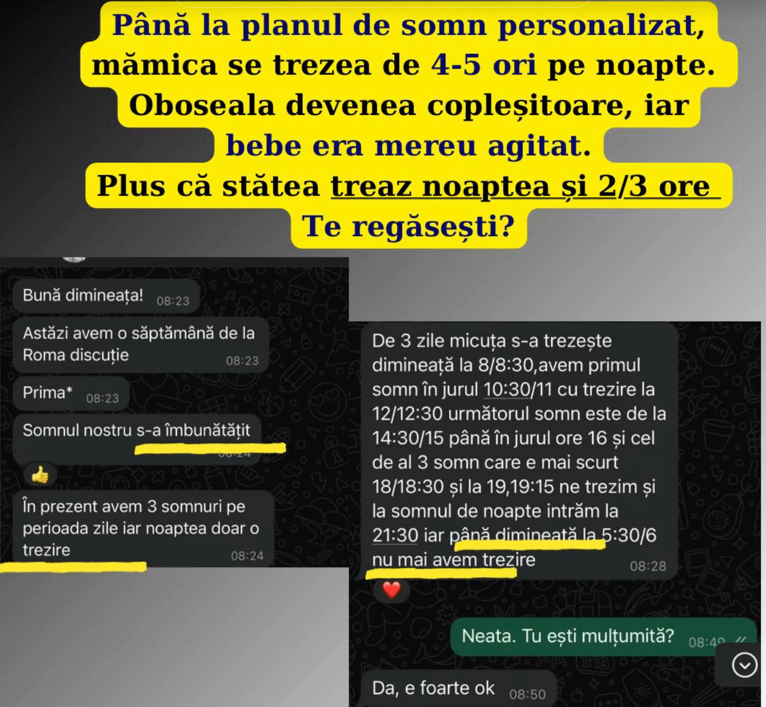 De la “ce fac când adoarme doar în brațe” până la “ce sunt regresiile de somn?”, ai răspunsuri exacte, fără să cauți ore întregi pe internet.